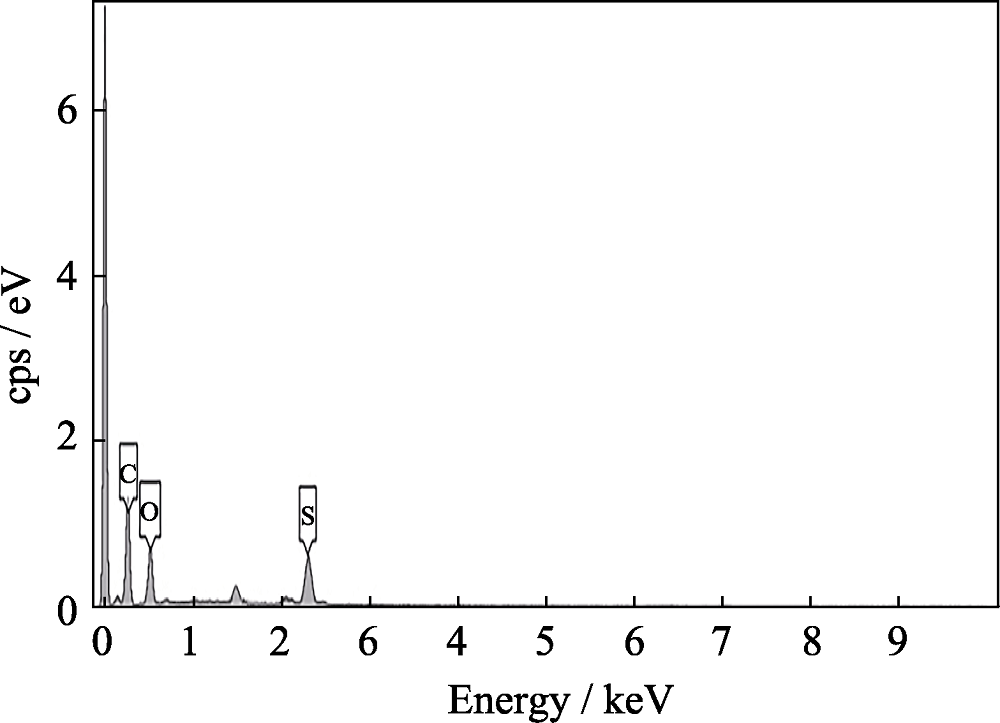 表S1 PEDOT和PEDOT:Ce@TiO2薄膜中碳, 氧, 硫, 钛和铈原子的元素质量百分比