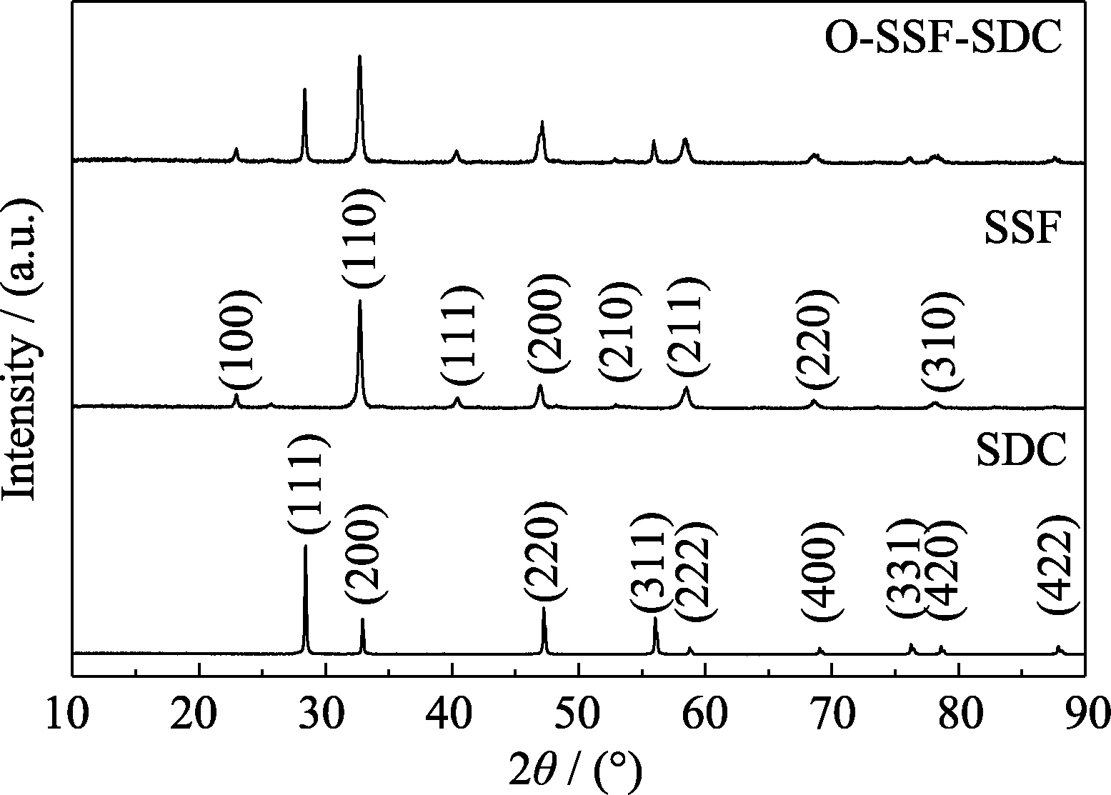 XU H, ZHANG H, CHU A. An investigation of oxygen reduction mechanism in nano-sized LSCF-SDC composite cathodes. International Journal of Hydrogen Energy, 2016, 41(47): 22415.