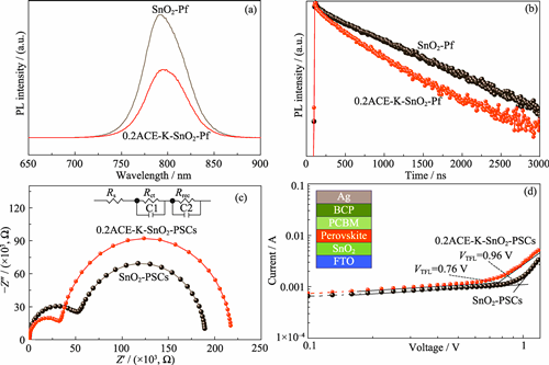 Oxygen vacancy defects at the surface and grain boundaries of tin dioxide (SnO2), an electron transport layer (ETL) material for perovskite solar cells (PSCs), can induce non-radiative recombination, thereby limiting further improvements in device efficiency. This study proposes a low-cost and efficient strategy for modifying the ETL using acesulfame potassium (ACE-K). The results demonstrated that the C=O and S=O groups in ACE-K molecules interact with the undercoordinated Sn4+ on the SnO2 surface, significantly passivating the oxygen vacancy defects in SnO2. Electrical conductivity of the film increased from 4.60×10-6 S·cm-1 to 6.23×10-6 S·cm-1. Moreover, ACE-K modification improved roughness (from 20.6 nm to 14.0 nm) and wettability of the SnO2 film, providing a better substrate for perovskite film growth. Consequently, the perovskite films grown on this optimized ETL enlarged grain sizes from 970.90 nm to 1071.20 nm and enhanced light absorption capability. Space-charge-limited current (SCLC) measurements revealed that the defect density decreased from 4.84×1016 cm-3 to 3.83×1016 cm-3, while electrochemical impedance spectroscopy (EIS) confirmed a significant suppression of non-radiative recombination during charge carrier transport. Ultimately, power conversion efficiency (PCE) of the PSCs improved from 19.27% to 21.60%. In addition, unpackaged ACE-K modified PSCs maintained 91.67% of initial PCE after 2160 h stored in N2, showing excellent long term stability.
