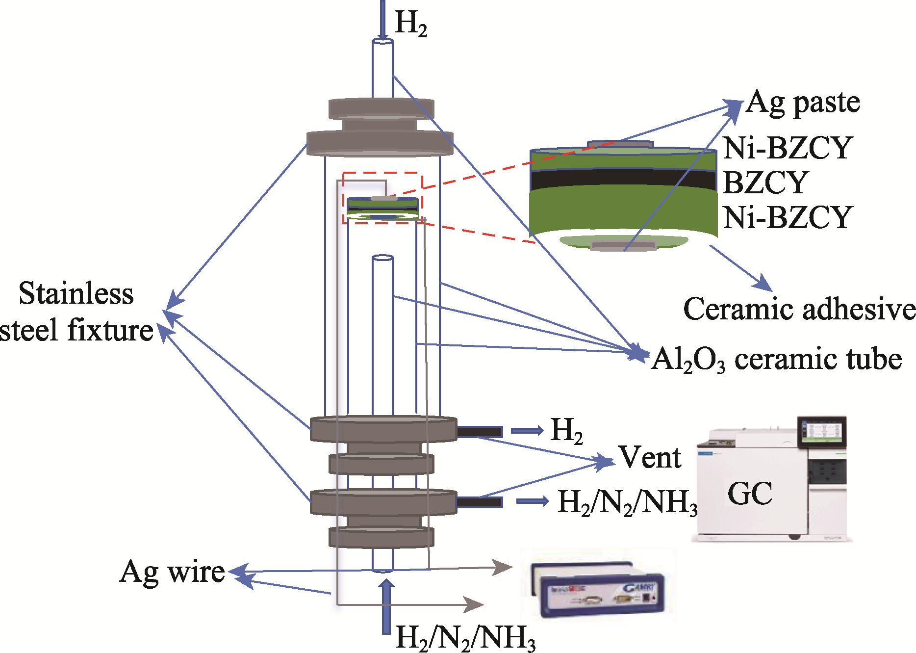ZHANG G J, CHEN T, GUO Z Z, et al. A 10 × 10 cm2 protonic ceramic electrochemical hydrogen pump for efficient and durable hydrogen purification. Chemical Engineering Journal, 2024, 495: 153521.