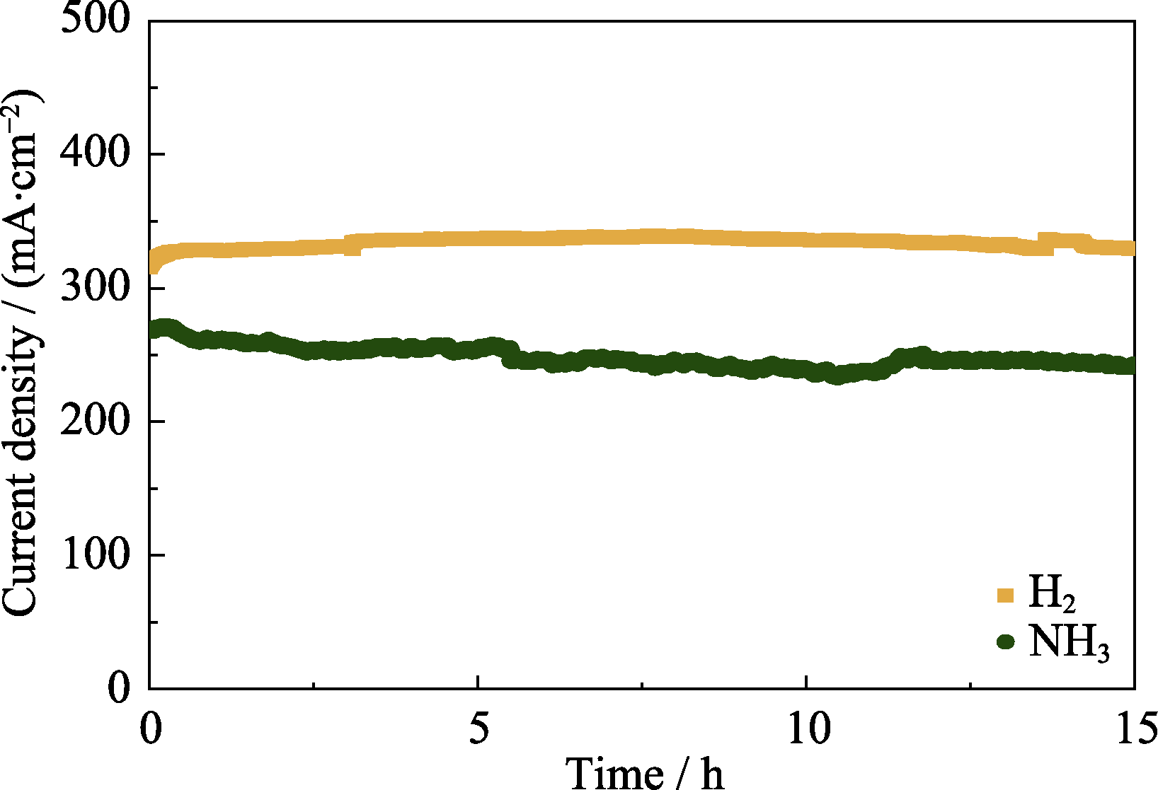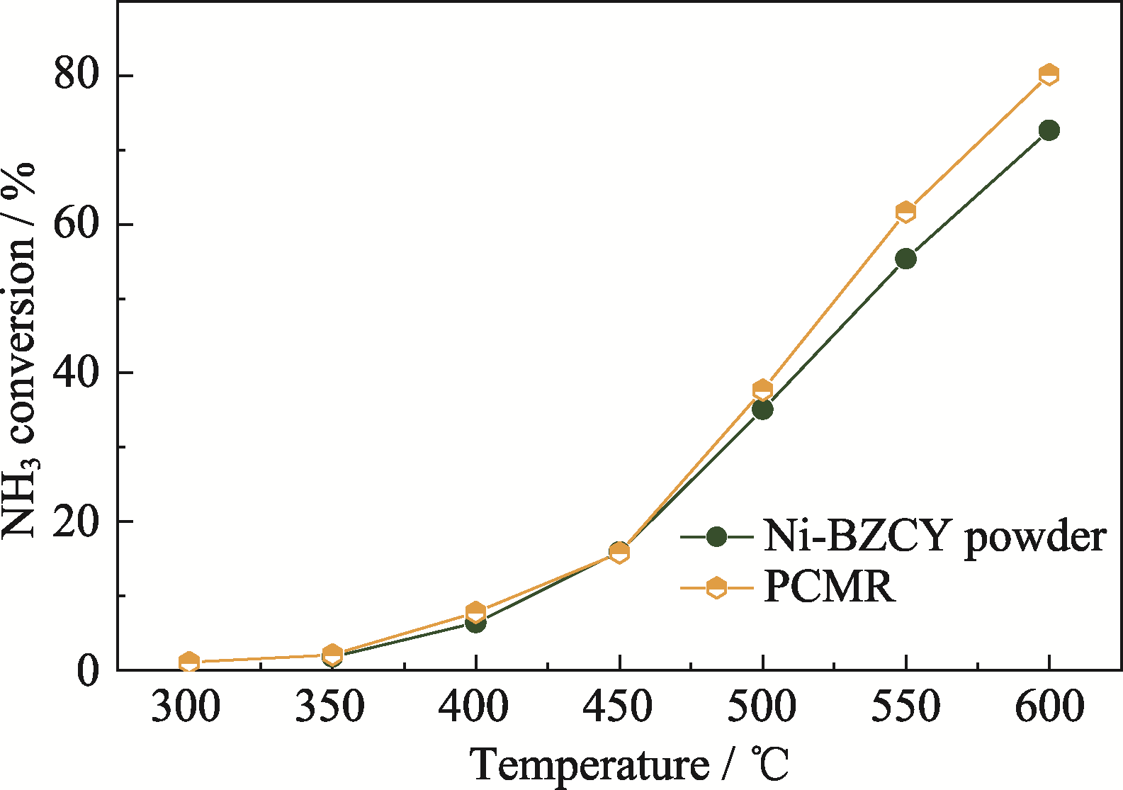| Temperature/℃ | H2 | NH3 | ||||