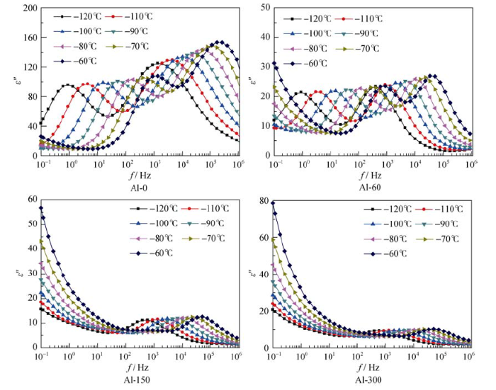 图5 不同Al掺杂量ZnO压敏陶瓷试样低温(-120℃~-60℃)介电频谱