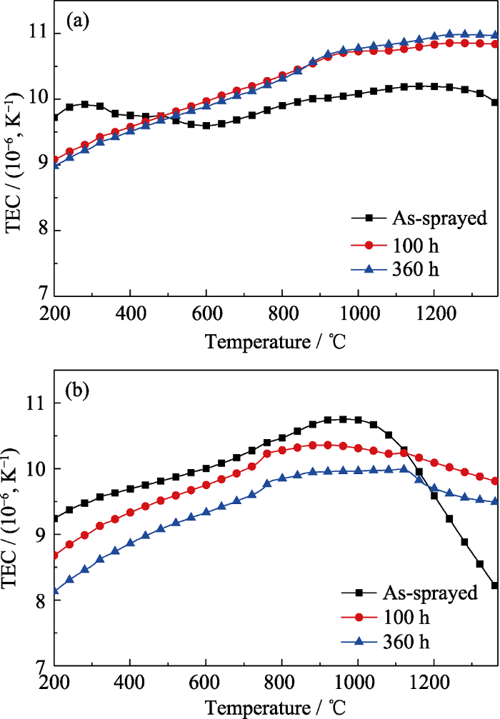 TECs of two different coatings after heat-treatment at 1600 ℃ for different time