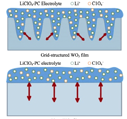 无机电致变色材料WO3具有从透明态到深蓝色变化的大透过率调制范围和柔和舒适的颜色转换, 在智能窗的生产和应用中具有不可比拟的优势, 能够调节窗口的透过照明强度以提供舒适的室内环境、美学设计和提高建筑节能效率。然而, WO3薄膜的致密性和较低的扩散系数使其切换时间非常长, 在需要快速响应的电子设备等领域表现得不尽人意, 提高WO3的响应速度、着色效率仍是当前研究的重点, 改进制备方法、掺杂元素、设计纳米结构和复合材料是改善WO3薄膜性能的几种常用手段。
