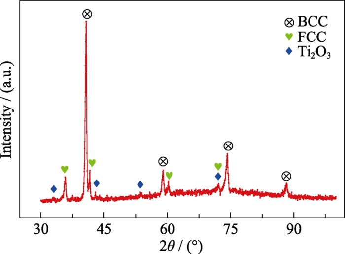 金属原材料采用高纯度商业微米粉: Cr(99.5%)、Mo(99.9%)、Nb(99.9%)、W(99.9%)、Ti(99.9%), 粉体平均粒径为45 µm。将金属粉体按照设定的摩尔比装入不锈钢球磨罐中, 抽真空至2 kPa后采用行星式高能球磨机对金属粉体进行机械合金化, 研磨介质为WC磨球(球料比10 : 1), 转速为350 r/min。首先进行42 h的干磨, 以获得预合金化的纳米粉体。其中, N和O是由于在球磨罐中留有少量的空气, 球磨过程中发生轻微的氮化和氧化引入的。较低的氮分压和氧分压有利于N和O缓慢地固溶进合金化粉体之中, 避免快速形成大量且不可控的氧化物和氮化物。C元素主要通过0.5wt%硬脂酸控制剂引入。干磨结束后, 以无水乙醇作为湿磨介质, 再经过6 h的湿磨, 以获得颗粒尺寸细小的合金化粉体。球磨后的预合金化纳米粉体通过放电等离子烧结获得块体材料。烧结在真空环境下(<10 Pa)下进行, 期间施加载荷30 MPa, 升温速度为100 ℃/min, 最终的烧结温度为1450 ℃, 保温时间为6 min。
