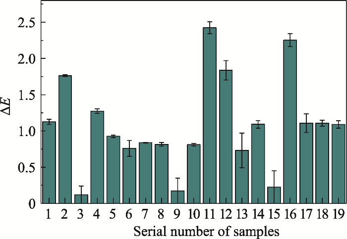 采用精密色度仪(WSC-2B, 上海电物理光学仪器有限公司)测得样品色差, 脆弱骨样品加固前后外观的改变采用色差变化表示: