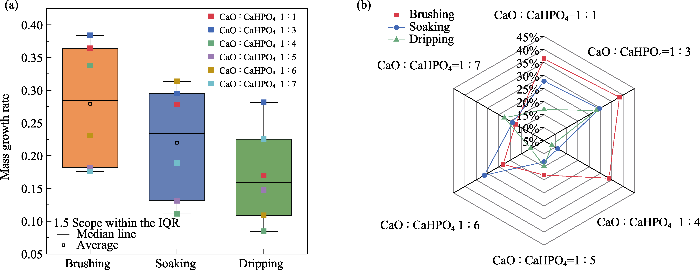加固方式和加固剂配比对脆弱骨样品质量增长率的影响