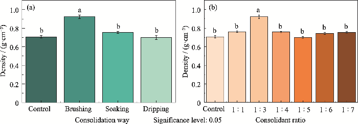 加固处理方式和加固剂配比对脆弱骨样品密度的影响