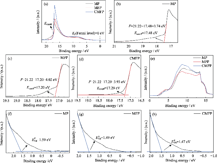 图4(e)是三种钙钛矿薄膜能带排列情况, CMFP的ECB和Φ相比MFP均向上移动, 这种能带结构有利于减少电荷复合, 因此Cs+掺杂可以增大电池的开路电压Voc。
