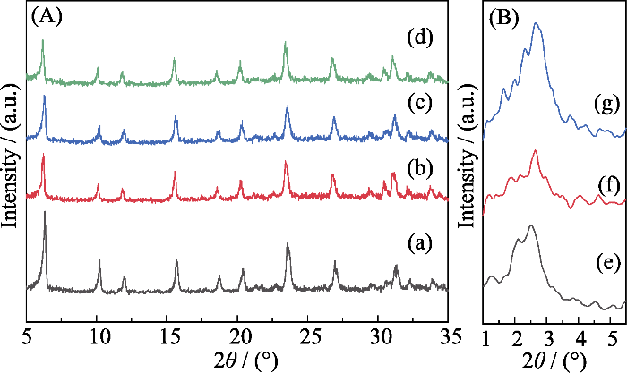 (A) Large angle XRD patterns; (B) Small angle XRD patterns