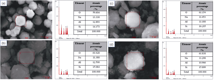 SEM images and the corresponding EDS results of samples