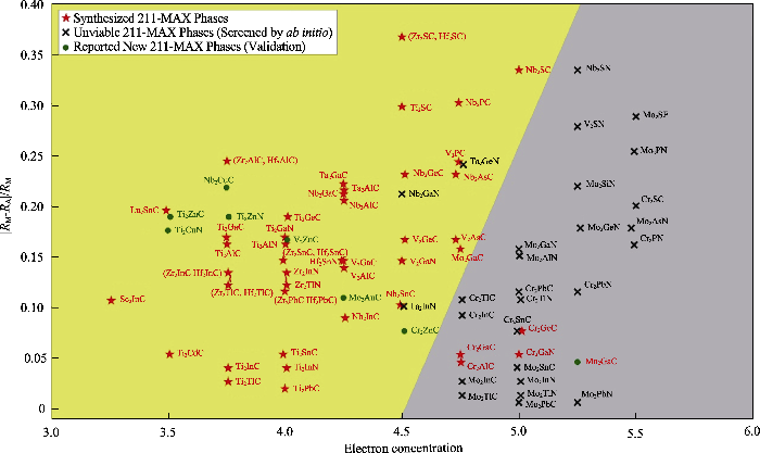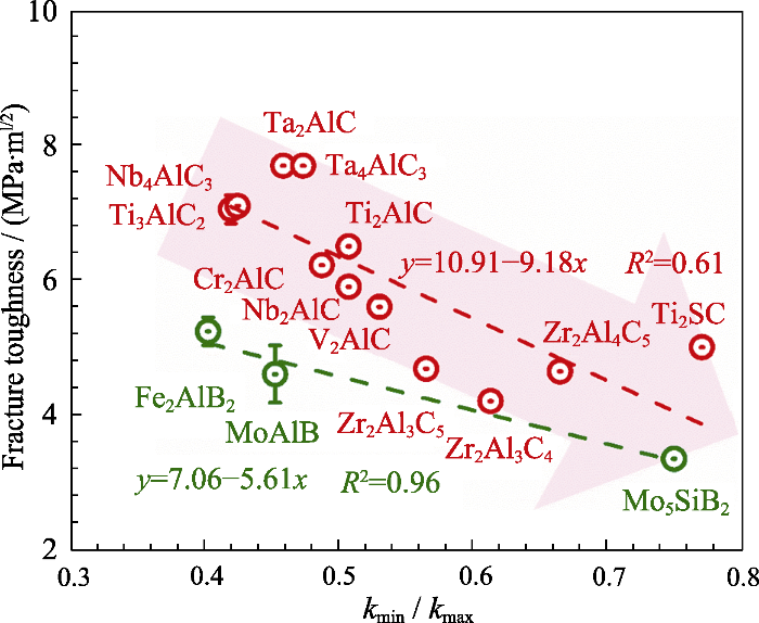 ... [138]Experimentally measured unilateral notched beam fracture toughness as a function of the weakest to strongest chemical bond stiffness ratio kmin/kmax for some typical ternary layered compounds (MAX and MAB phases)[138]Fig. 112 MAX/MAB相的结构计算及其新材料挖掘2.1 材料智能设计研发平台及材料挖掘