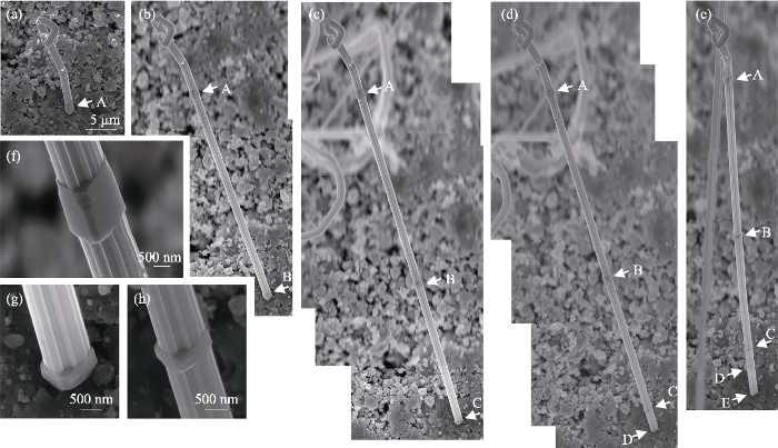 (a-e) For once, twice, 3 times, 4 times, and 5 times, respectively with faceted segments formed in vacuum being pointed by white arrows; (f-h) High magnification SEM images of the faceted segments indicated by arrow A in (b), arrow C in (c), and arrow C in (d), respectively ...